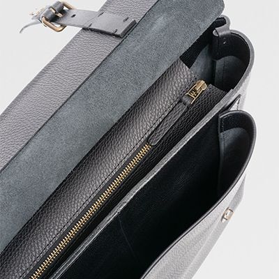 Быстрый доступ к содержимому обеспечивает фиксация клапана на замочки. А латунные пряжки носят лишь декоративную функцию.